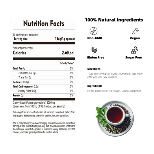 Functional Detox & Antioxidant Tea Blend, Natural Celery Seed & Pu-erh Tea for Joint Health, Blood Sugar Balance, and Digestive Support